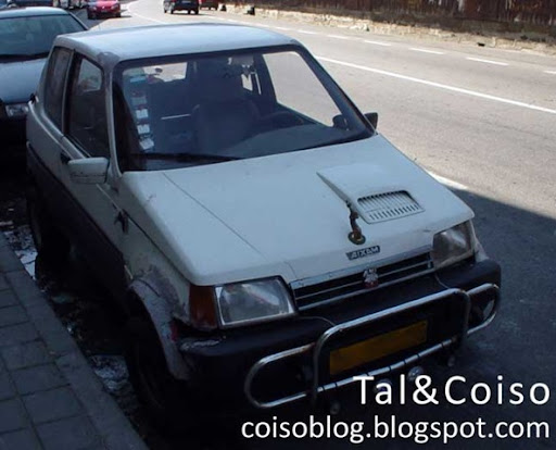 Esta magnífica bomba que encontrei numa rua da Régua contradiz o estereótipo de que é preciso ser rico para fazer tunning. Olhem-me para esta obra de arte! Bela máquina, é o que é... Tem ar de quem consegue ir dos 0 aos 100 (m/h) em... vá lá... 2 horas.